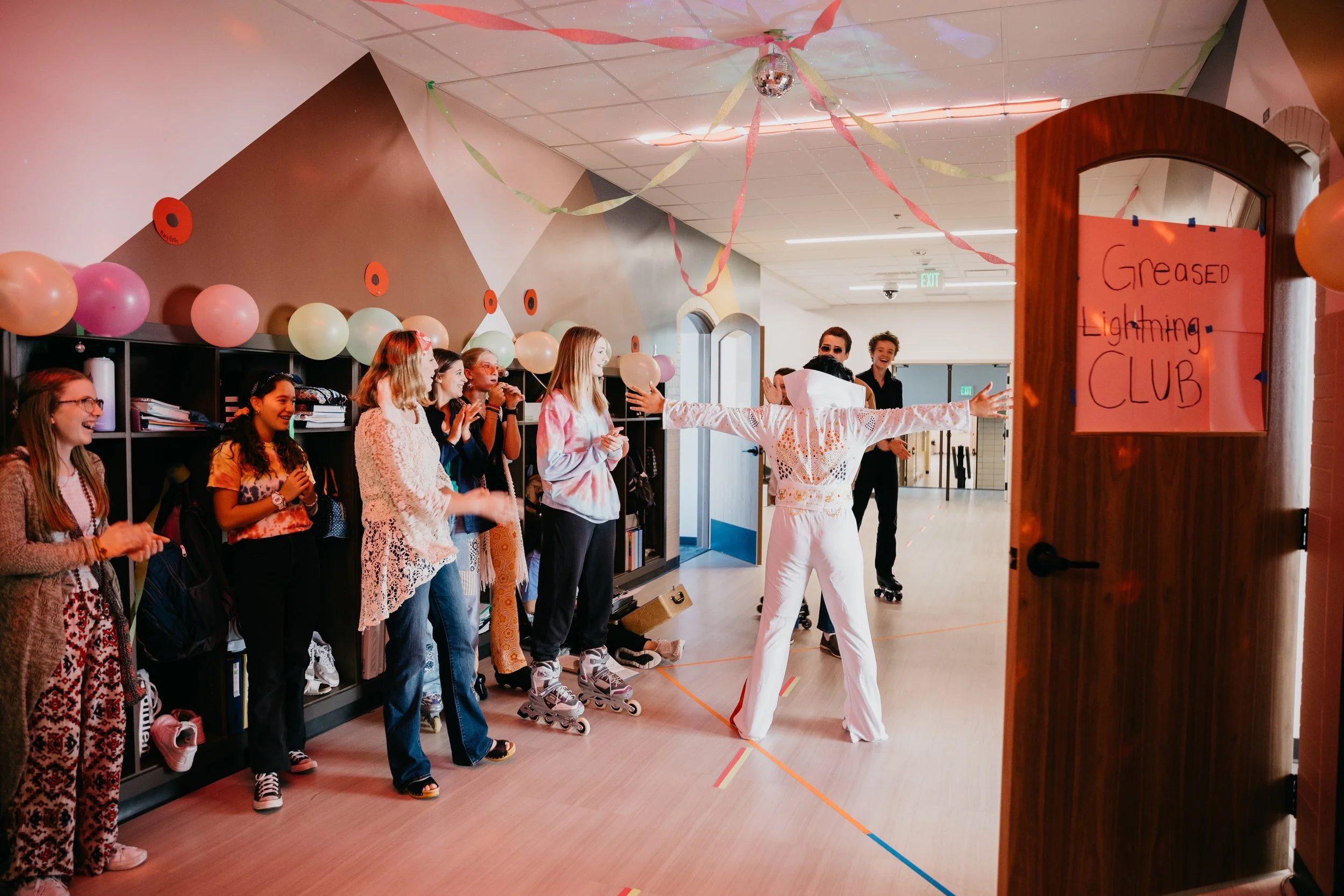 St. Rose of Lima took home first place in this competition as they focused on the Ancient Egyptians. Their outfits were outstanding, their representation of the Nile river flowing through the hallway was excellent and their names on their lockers in hieroglyphics added a beautiful touch. 2nd place was awarded to St. Joan of Arc household, who recreated our Phase 2 construction project in the hallway to represent the physical foundation of our new building and the spiritual foundation being laid every day for the future. 3rd place went to St. Augustine with beautiful representations of Jerusalem as the City of God and Athens as the City of Man. Rounding out the competition with the most creative theme choice was St. Paul household, who focused on a montage of 1970s-ish themes with Elvis, disco balls, and a number of "almost 1970s" references that may have been off by a decade here-or-there, but were creative nonetheless.